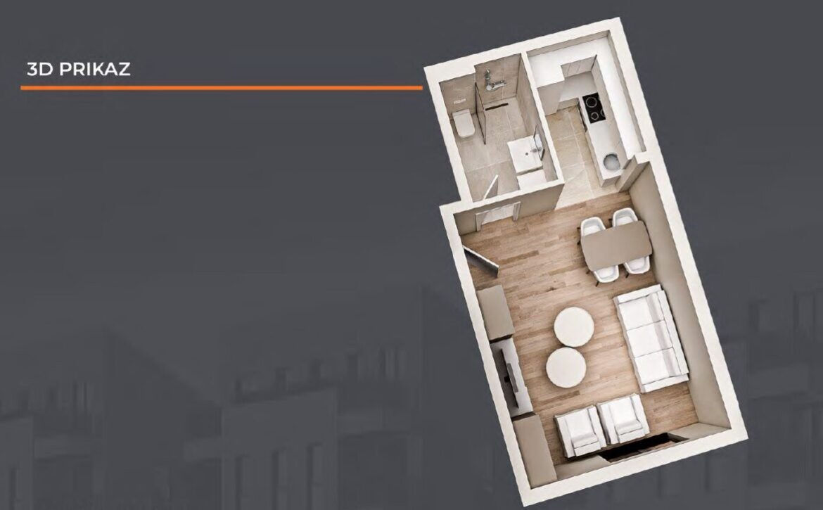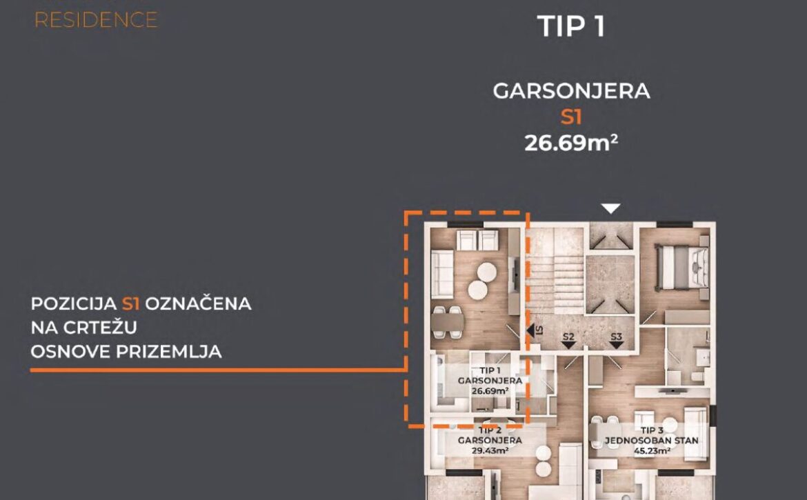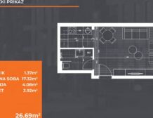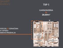 Na prodaju garsonjera na atraktivnoj lokaciji Zabjelo. Stan ima površinu od 26,69 m² i nalazi se u prizemlju stambenog objekta koji je trenutno u fazi izgradnje. Ova nekretnina je pogodna kako za stanovanje, tako i kao investicija za izdavanje, s obzirom na traženost manjih stanova u ovom dijelu grada.