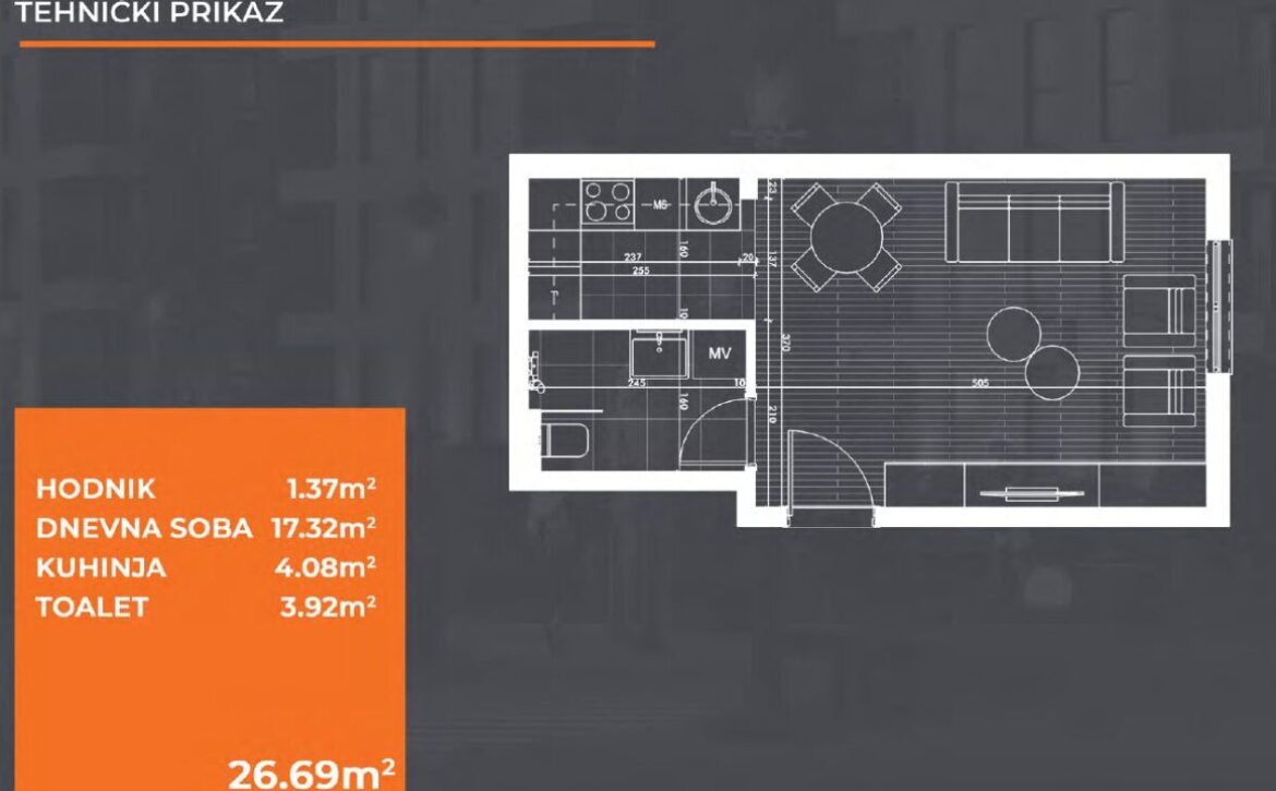 Garsonjera 26,69m2, Zabjelo
